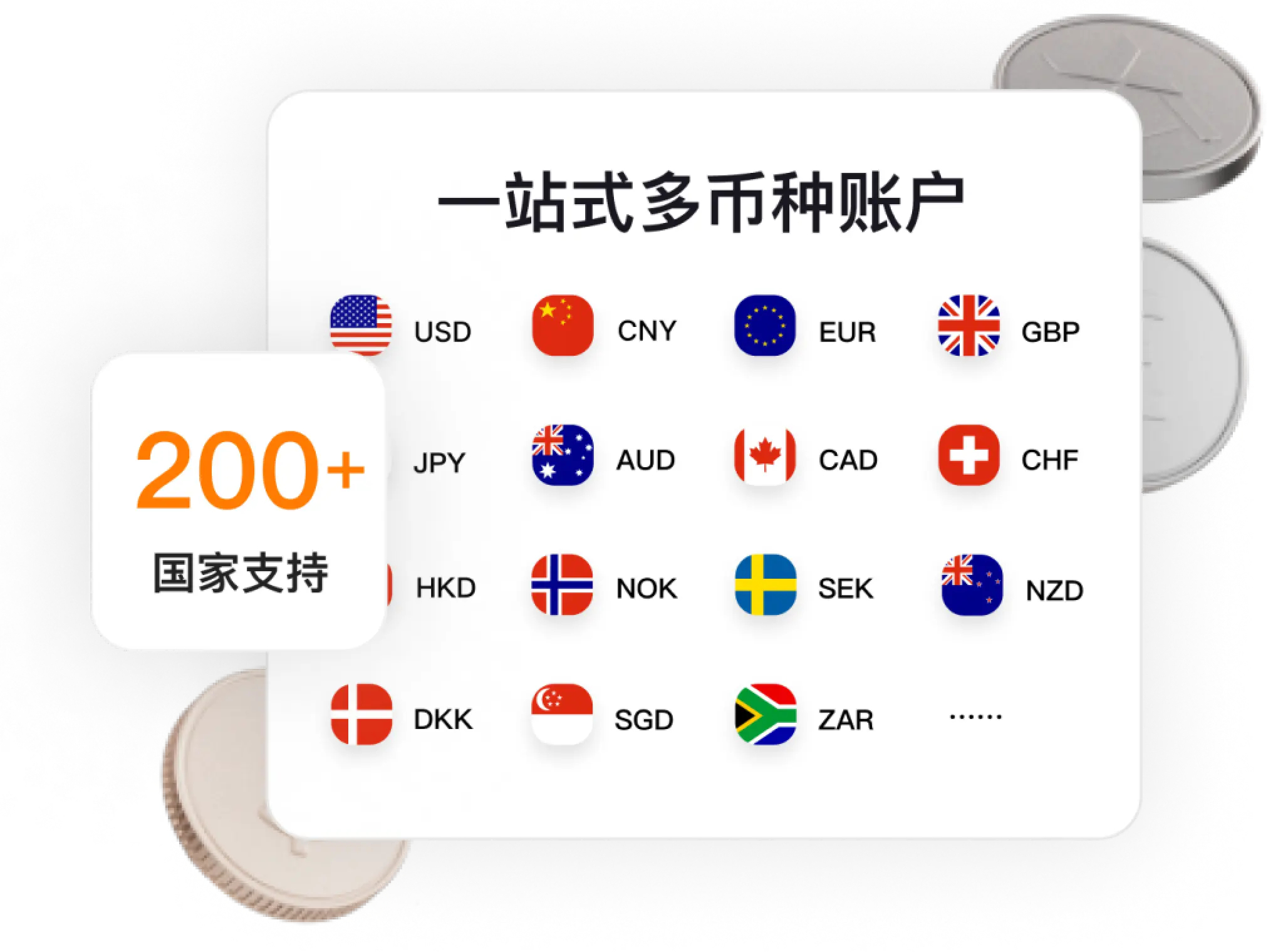 全球收款账户,支持20+币种,非制裁国家/地区全覆盖本地收款账户,支持非洲、东南亚、拉美等新兴市场,本币收款最快实时达